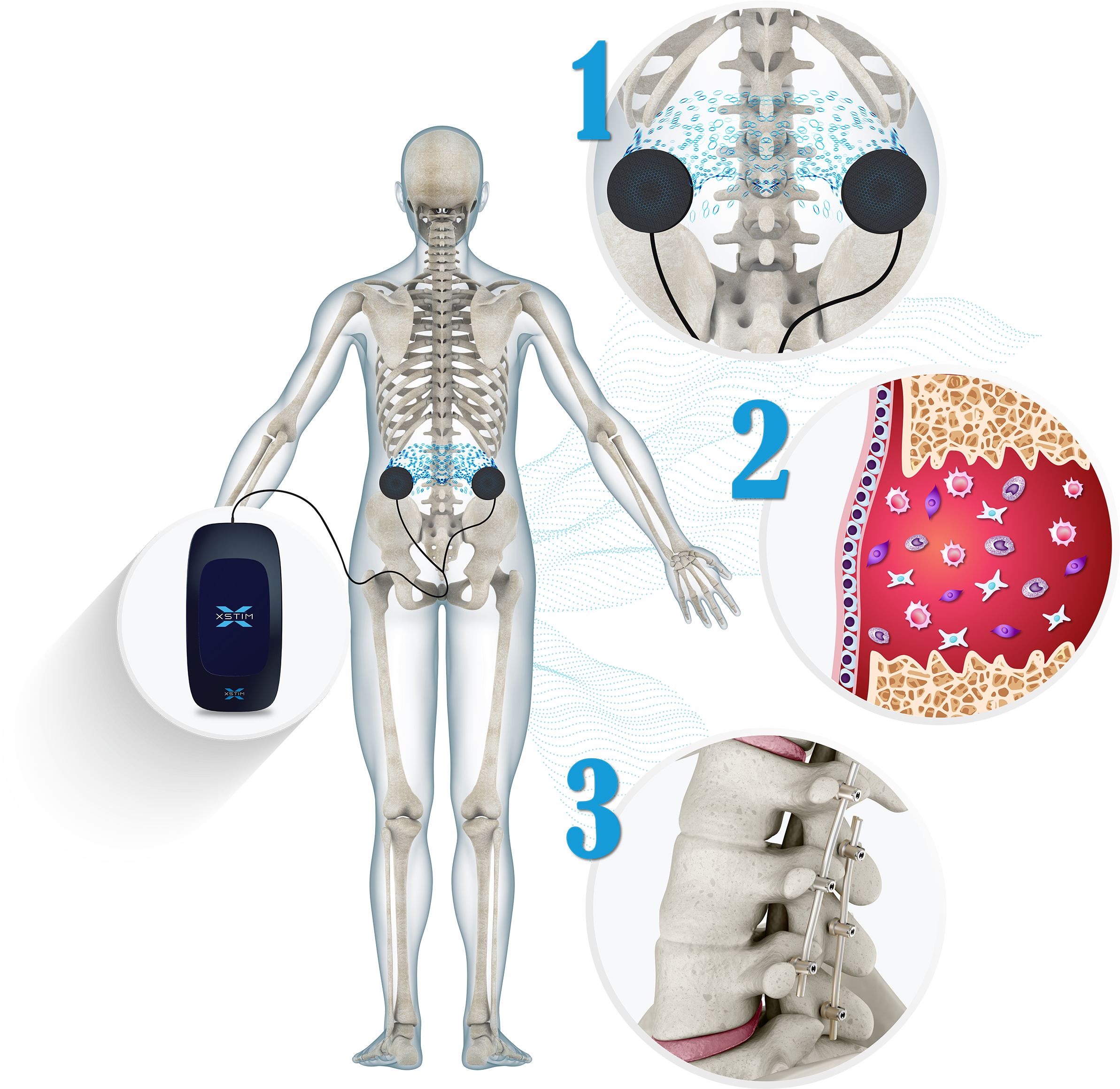 Xstim spine fusion stimulation therapy promotes spine fusion using targeted electrical stimulation and the body's natural healing abilities.